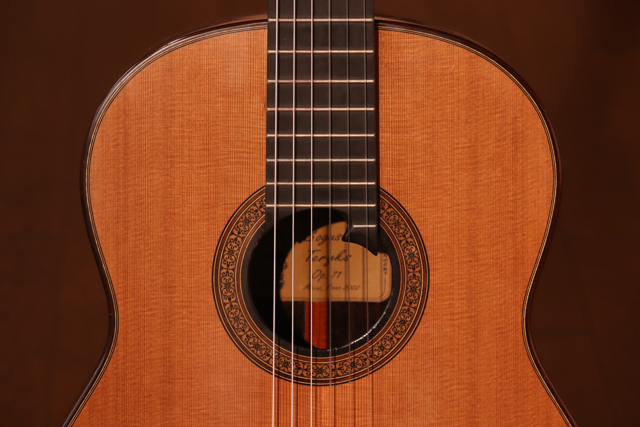| 備考: | 世界的ギタリストのマルシン・ディラが使用していることで有名なボグスワフ・テリクス氏のギターです。詳しいスペックがわからないためあくまで目視等での判断となりますが、おそらく表板は杉のダブルトップ+ラティスブレーシング、横・裏板はハカランダとローズウッドの二重構造です。裏板はアーチがついていて少し膨らんでいます。