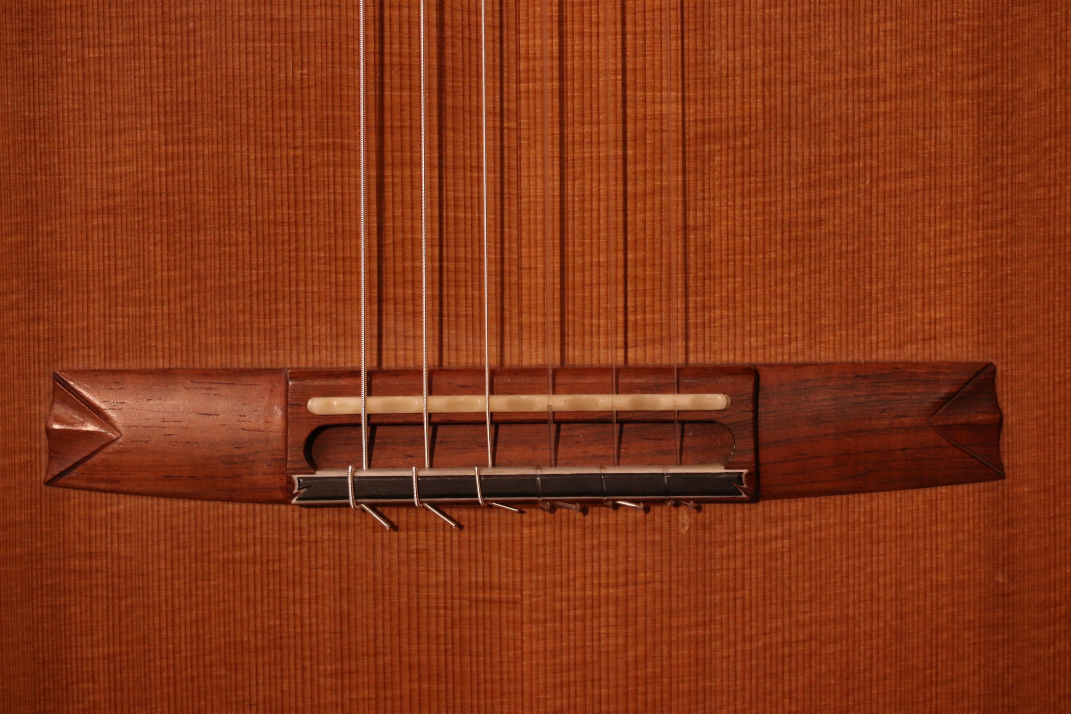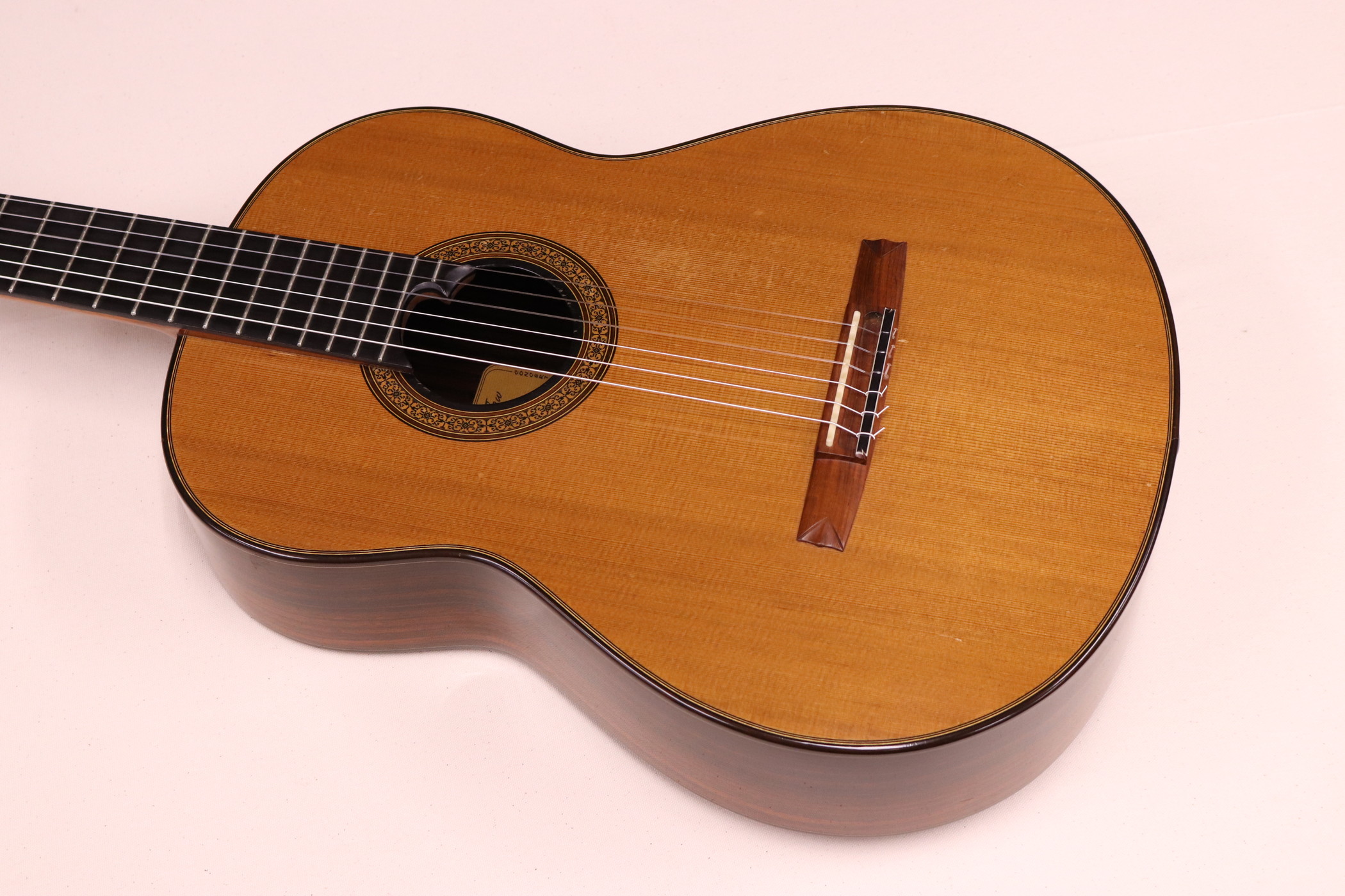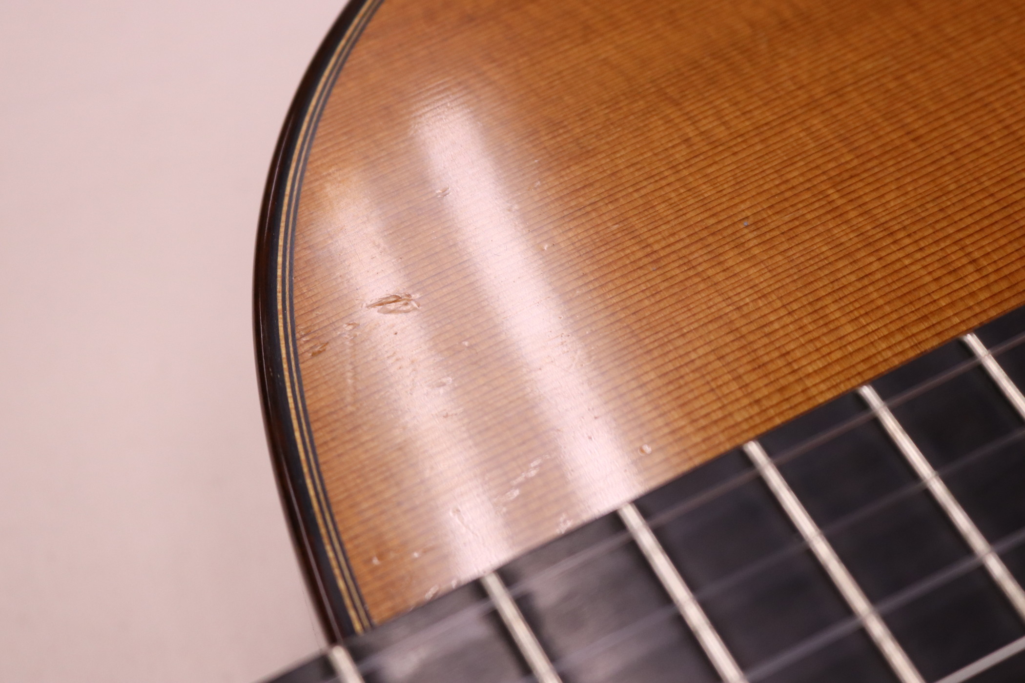 | ボディ材: | 表板/杉(おそらくダブルトップ) 横・裏板/ハカランダ(おそらくローズウッドとの二重構造) |